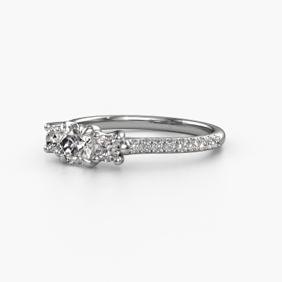 This platinum ring is called Jesica and is set with 0.78 crt diamond. What is it that makes your relationship unique? What is it about her that makes you want to bend down on one knee? The unique bond between the two of you is emphasized by an equally unique ring. A one of a kind graceful 3-stone engagement ring made especially for her. That is why this classic ring fits her like a glove. Each specific detail of this graceful platinum diamond set engagement ring is hand-picked, crafted and polished by our expert goldsmith. The result is an exquisite ring, unique and perfectly crafted to perfection. That is what our expert Goldsmiths strive for. This jewel is made just for you, with attention to detail and design.After receiving your order, our goldsmiths will passionately start the creative process of making your engagement ring in our own studio. Because we don't have a big stockpile, these costs will not be passed on to you. Our pricing is proof of that! We offer top quality jewels at lowest price, guaranteed.Different styles of new rings are made daily by our team. Perhaps you have found a 3-stone engagement ring somewhere. One you would like to give to your loved one. Please feel free to share your thoughts and design with our jewel designers. We would love to turn your design into a classic engagement ring. You can follow the development of your ring design because we use very detailed 3D drawings. On top of that, you can order a dummy of the design. A dummy is a plastic ring, which can be shaped according your ring design. You can try it on and check if the engagement ring is up to standard. We will gladly send you a non-binding offer, based on a fair price/ quality ratio. The offer will baffle you, considering the quality of the ring and gemstones.To make it easier for you, we offer a 30 day return policy. Check our terms and conditions.