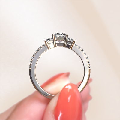 This platinum ring is called Dorla and is set with 0.977 crt diamond. What is it that makes your relationship unique? What is it about her that makes you want to bend down on one knee? The unique bond between the two of you is emphasized by an equally unique ring. A one of a kind micro pave 3-stone engagement ring made especially for her. That is why this exclusive ring fits her like a glove. Each specific detail of this micro pave platinum diamond set engagement ring is hand-picked, crafted and polished by our expert goldsmith. The result is an exquisite ring, unique and perfectly crafted to perfection. That is what our expert Goldsmiths strive for. This jewel is unique in every way! Simply customize to your liking,After receiving your order, our goldsmiths will passionately start the creative process of making your engagement ring in our own studio. Because we don't have a big stockpile, these costs will not be passed on to you. Our pricing is proof of that! We offer top quality jewels at lowest price, guaranteed.Do you have a specific ring in mind? One you came across somewhere. Please feel free to tell us your wishes and we will turn your design into a unique engagement ring. You can follow the development of your ring design because we use 3D drawings. This gives you a realistic preview of your design. We will gladly send you a non-binding offer, based on a fair price/ quality ratio. It will amaze you.To make it easier for you, we offer a 30 day return policy. Check our terms and conditions.