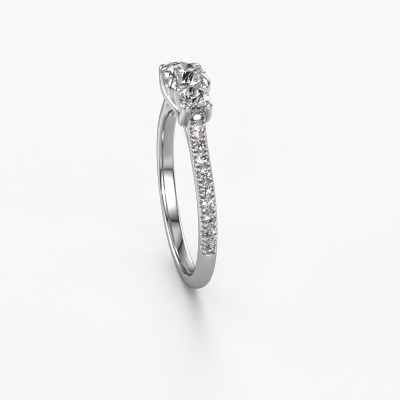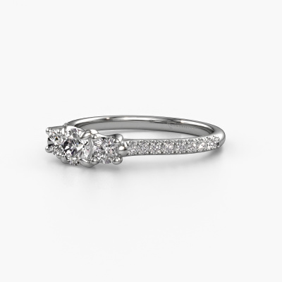 This 14 Carat white gold ring is called Jesica and is set with 0.680 crt diamond. What is it that makes your relationship unique? What is it about her that makes you want to bend down on one knee? The unique bond between the two of you is emphasized by an equally unique ring. A one of a kind graceful 3-stone engagement ring made especially for her. That is why this classic ring fits her like a glove. Each specific detail of this graceful white gold diamond set engagement ring is hand-picked, crafted and polished by our expert goldsmith. The result is an exquisite ring, unique and perfectly crafted to perfection. That is what our expert Goldsmiths strive for. This jewel is made just for you, with attention to detail and design.After receiving your order, our goldsmiths will passionately start the creative process of making your engagement ring in our own studio. Because we don't have a big stockpile, these costs will not be passed on to you. Our pricing is proof of that! We offer top quality jewels at lowest price, guaranteed.Different styles of new rings are made daily by our team. Perhaps you have found a 3-stone engagement ring somewhere. One you would like to give to your loved one. Please feel free to share your thoughts and design with our jewel designers. We would love to turn your design into a classic engagement ring. You can follow the development of your ring design because we use very detailed 3D drawings. On top of that, you can order a dummy of the design. A dummy is a plastic ring, which can be shaped according your ring design. You can try it on and check if the engagement ring is up to standard. We will gladly send you a non-binding offer, based on a fair price/ quality ratio. The offer will baffle you, considering the quality of the ring and gemstones.To make it easier for you, we offer a 30 day return policy. Check our terms and conditions.
