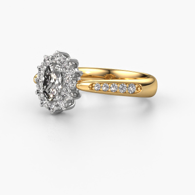 The ring shown above is called the Margien 2. We call this a Lady Diana ring. With an Lady Diana engagement ring, the larger centre gem is encircled by smaller side stones. This 14 Carat gold ring is set with a 0.40 crt oval diamond gemstone, surrounded by smaller diamonds side stones. It's the most famous and celebrated engagement ring in the world; The Lady Diana ring. Exclusively meant for the most remarkable person in your life! A truly stunning aspect of this Lady Diana ring is its centre diamond. The smaller side stones embracing the diamond emphasize the sparkle of the centre gemstone, this makes it look as though they merge into one big gemstone. Due to its design, this is even more apparent in the Lady Di ring. Our expert Goldsmiths are keen to create a unique ring just for you. We can even customize the ring to your liking in our own crafting studio. This piece of jewellery is created to add sparkle to your finger, each jewel is lovingly made by hand by our goldsmiths.Are you on a budget? Please feel free to contact us, so we can go discuss your options. We offer our engagement rings at guaranteed best price, because we make them to order. You won't find such a price anywhere else!Our team adds new designs to our online collection daily. Our designers and goldsmiths work together in creating the best design. We strive to offer a diverse collection of jewels. Perhaps you have a specific jewel design in mind. One you came across somewhere. Please contact us for a free consultation. We will make you an offer, based on a fair price/ quality ratio, that will baffle you.To make it easier for you, we offer a 30 day return policy. Check our terms and conditions.