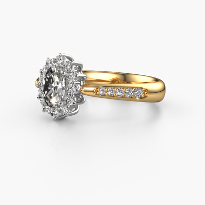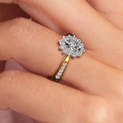 The ring shown above is called the Margien 2. We call this a Lady Diana ring. With an Lady Diana engagement ring, the larger centre gem is encircled by smaller side stones. This 14 Carat gold ring is set with a 0.60 crt oval diamond gemstone, surrounded by smaller diamonds side stones. It's the most famous and celebrated engagement ring in the world; The Lady Diana ring. Exclusively meant for the most remarkable person in your life! A truly stunning aspect of this Lady Diana ring is its centre diamond. The smaller side stones embracing the diamond emphasize the sparkle of the centre gemstone, this makes it look as though they merge into one big gemstone. Due to its design, this is even more apparent in the Lady Di ring. Our expert Goldsmiths are keen to create a unique ring just for you. We can even customize the ring to your liking in our own crafting studio. This piece of jewellery is created to add sparkle to your finger, each jewel is lovingly made by hand by our goldsmiths.Are you on a budget? Please feel free to contact us, so we can go discuss your options. We offer our engagement rings at guaranteed best price, because we make them to order. You won't find such a price anywhere else!Our team adds new designs to our online collection daily. Our designers and goldsmiths work together in creating the best design. We strive to offer a diverse collection of jewels. Perhaps you have a specific jewel design in mind. One you came across somewhere. Please contact us for a free consultation. We will make you an offer, based on a fair price/ quality ratio, that will baffle you.To make it easier for you, we offer a 30 day return policy. Check our terms and conditions.