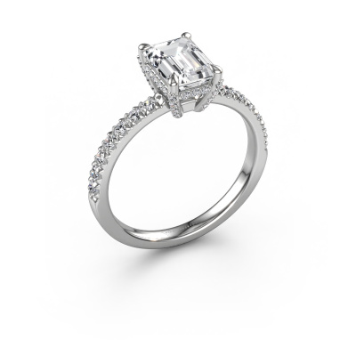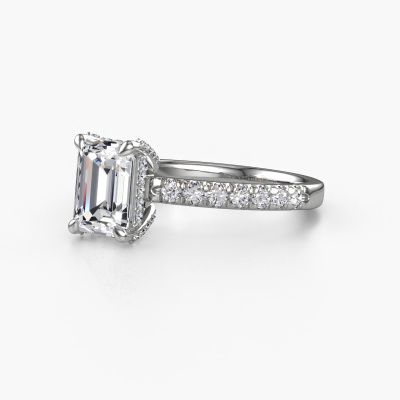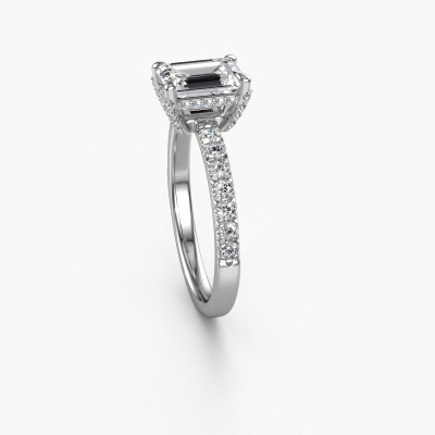 The ring shown above is called the Saskia EME 1, we call this a solitaire ring because it contains a single gemstone. The engagement ring is made in platinum and has a emerald cut diamond of 1.50 crt. The cool thing about our configurator is that you can compile your own piece of jewellery, into a completely personalized one. This solitaire ring is crafted in the precious metals platinum with platinum, but of course you are free to pick your own colours. Each piece of jewellery is made with passion and love by one of our master goldsmiths.The solitaire ring is a special type of engagement ring. Its open prong setting allows light to strike the gemstone from various angles. This exclusive engagement ring is a stunning eye-catcher because of the high positioning of the gemstone. In order for you to commemorate your proposal with a unique ring, we carefully adorn this solitaire ring by hand. The love of your life deserves nothing but the best. After receiving your order, our goldsmiths will passionately start the creative process of making your engagement ring in our own studio. Because we don't have a big stockpile, these costs will not be passed on to you. Our pricing is proof of that! We offer top quality jewels at lowest price, guaranteed.Our team adds new designs to our online collection daily. Our designers and goldsmiths work together in creating the best design. We strive to offer a diverse collection of jewels. Perhaps you have a specific jewel design in mind. One you came across somewhere. Please contact us for a free consultation. We will make you an offer, based on a fair price/ quality ratio, that will baffle you.To make it easier for you, we offer a 30 day return policy. Check our terms and conditions.