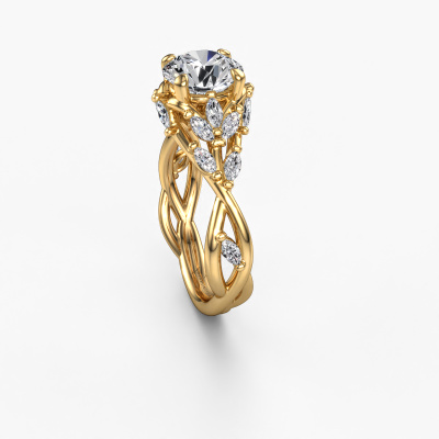 The ring shown above is called the Samantha RND. We call this type of ring a pavé solitaire ring because it has one centre gemstone and a band that is also pave set with gemstones. This engagement ring is made in 14 Carat gold set with a 1.50 crt round diamond, and pave set diamonds at the sides. Each piece of jewellery is made with passion and love by one of our master goldsmiths.This contemporary gold pavé solitaire engagement ring has an exquisite round diamond centre stone. To further accentuate the centre stone, the band is set full with more diamonds. Its open prong setting allows light to strike the diamond from various angles and this adds sparkle to your diamond ring. The photo shown above depicts the goldsmith's carefully handcrafted details of the ring. The high positioning of the centre stone is truly eye-catching. The perfect engagement ring for the crown jewel of your life!By using a combination of the latest modern techniques, combined with ancient crafting, we can make all our engagement rings in our own studio. Each jewel is made to order. This is advantageous because we can offer you a price you won't find anywhere else.Our designers and goldsmiths work together each day, creating new jewels. Perhaps you have found a nice contemporary engagement ring somewhere, which can be used to customize your unique ring. Please feel free to contact us. We will make you an offer, based on a fair price/ quality ratio, which will amaze you.To make it easier for you, we offer a 30 day return policy. Check our terms and conditions.
