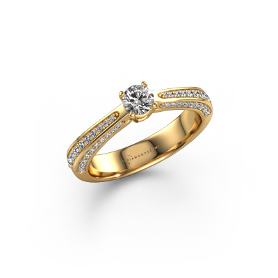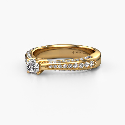 The ring shown above is called the Ruby rnd. We call this type of ring a pavé solitaire ring because it has one centre gemstone and a band that is also pave set with gemstones. This engagement ring is made in 14 Carat gold set with a 0.25 crt round diamond, and pave set diamonds at the sides. Each piece of jewellery is made just for you, with attention to detail and design.This exclusive gold pavé solitaire engagement ring has an exquisite round diamond centre stone. To further accentuate the centre stone, the band is set full with more diamonds. Its open prong setting allows light to strike the diamond from various angles and this adds sparkle to your diamond ring. The photo shown above depicts the goldsmith's carefully handcrafted details of the ring. The high positioning of the centre stone is truly eye-catching. The perfect engagement ring for the crown jewel of your life!Because we design and deliver our own rings, we can offer you a engagement ring at a price you won't find anywhere else. A ring is made to order, which helps prevent excess supplies, so we can make you a great price offer. We understand it feels risky, buying your engagement ring online, but we will gladly assist in the designing process, taking your budget into consideration.Do you have a specific ring in mind? One you came across somewhere. Please feel free to tell us your wishes and we will turn your design into a unique engagement ring. You can follow the development of your ring design because we use 3D drawings. This gives you a realistic preview of your design. We will gladly send you a non-binding offer, based on a fair price/ quality ratio. It will amaze you.To make it easier for you, we offer a 30 day return policy. Check our terms and conditions.
