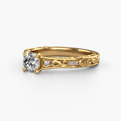 The ring shown above is called the Mallory rnd. We call this type of ring a pavé solitaire ring because it has one centre gemstone and a band that is also pave set with gemstones. This engagement ring is made in 14 Carat gold set with a 0.60 crt round diamond, and pave set lab-grown diamonds at the sides. Each piece of jewellery is made just for you by our master goldsmiths in our own studio.This vintage gold pavé solitaire engagement ring has an exquisite round diamond centre stone. To further accentuate the centre stone, the band is set full with more lab-grown diamonds. Its open prong setting allows light to strike the diamond from various angles and this adds sparkle to your diamond ring. The photo shown above depicts the goldsmith's carefully handcrafted details of the ring. The high positioning of the centre stone is truly eye-catching. The perfect engagement ring for the crown jewel of your life!Because we design and deliver our own rings, we can offer you a engagement ring at a price you won't find anywhere else. A ring is made to order, which helps prevent excess supplies, so we can make you a great price offer. We understand it feels risky, buying your engagement ring online, but we will gladly assist in the designing process, taking your budget into consideration.Different styles of new rings are made daily by our team. Perhaps you have found a pavé solitaire engagement ring somewhere. One you would like to give to your loved one. Please feel free to share your thoughts and design with our jewel designers. We would love to turn your design into a vintage engagement ring. You can follow the development of your ring design because we use very detailed 3D drawings. On top of that, you can order a dummy of the design. A dummy is a plastic ring, which can be shaped according your ring design. You can try it on and check if the engagement ring is up to standard. We will gladly send you a non-binding offer, based on a fair price/ quality ratio. The offer will baffle you, considering the quality of the ring and gemstones.To make it easier for you, we offer a 30 day return policy. Check our terms and conditions.
