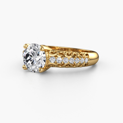 This 14 Carat gold ring is called Mellie and is set with 1.72 crt diamond. What is it that makes your relationship unique? What is it about her that makes you want to bend down on one knee? The unique bond between the two of you is emphasized by an equally unique ring. A one of a kind filigree pavé solitaire engagement ring made especially for her. That is why this vintage ring fits her like a glove. Each specific detail of this filigree gold diamond set engagement ring is hand-picked, crafted and polished by our expert goldsmith. The result is an exquisite ring, unique and perfectly crafted to perfection. That is what our expert Goldsmiths strive for. This jewel is made by a team of passionate goldsmiths and jewel designers. This will make your crown jewel truly eye-catching.Are you on a budget? Please feel free to contact us, so we can go discuss your options. We offer our engagement rings at guaranteed best price, because we make them to order. You won't find such a price anywhere else!Have you found a specific engagement ring somewhere which you would like to give to your loved one? Please feel free to express your wishes to our jewel designers because we would be honoured to turn your design into a vintage engagement ring. You can follow the development of your ring design because we use 3D drawings. This gives you a realistic preview of how your design will look. You can also preorder a dummy. A dummy is a plastic ring, which can be shaped according your ring design. You can try it on and check if its width and size are suitable for you. We will gladly send you a non-binding offer, based on a fair price/ quality ratio. It will amaze you, considering the quality of the ring and gemstones.To make it easier for you, we offer a 30 day return policy. Check our terms and conditions.