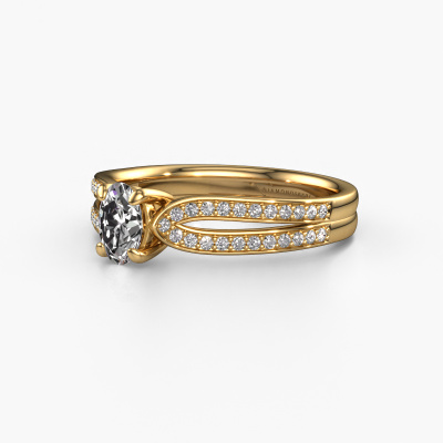 The ring shown above is called the Antonia ovl 2. We call this type of ring a pavé solitaire ring because it has one centre gemstone and a band that is also pave set with gemstones. The 14 Carat gold engagement ring is set with a oval 0.40 crt diamond centre stone and the band is pave set with diamond gemstones. Each jewel is unique in every way! Simply customize to your liking,This contemporary gold pavé solitaire engagement ring has an exquisite oval diamond centre stone. To further accentuate the centre stone, the band is fully set with more diamonds. Its open prong setting allows light to strike the diamond from various angles and this adds sparkle to your diamond ring. The photo shown above depicts the goldsmith's carefully handcrafted details of the ring. The high positioning of the centre stone is truly eye-catching. The perfect engagement ring for the crown jewel of your life! By using a combination of the latest modern techniques, combined with ancient crafting, we can make all our engagement rings in our own studio. Each jewel is made to order. This is advantageous because we can offer you a price you won't find anywhere else.Our team adds new designs to our online collection daily. Our designers and goldsmiths work together in creating the best design. We strive to offer a diverse collection of jewels. Perhaps you have a specific jewel design in mind. One you came across somewhere. Please contact us for a free consultation. We will make you an offer, based on a fair price/ quality ratio, that will baffle you.To make it easier for you, we offer a 30 day return policy. Check our terms and conditions.
