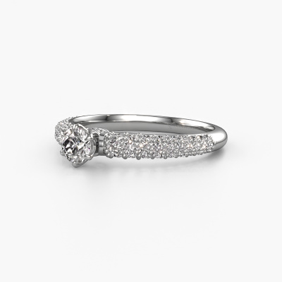 The ring shown above is called the Meryl. We call this type of ring a pavé solitaire ring because it has one centre gemstone and a band that is also pave set with gemstones. This engagement ring is made in platinum set with a 0.30 crt round diamond, and pave set diamonds at the sides. Each piece of jewellery is made just for you, with attention to detail and design.This exclusive platinum pavé solitaire engagement ring has an exquisite round diamond centre stone. To further accentuate the centre stone, the band is set full with more diamonds. Its open prong setting allows light to strike the diamond from various angles and this adds sparkle to your diamond ring. The photo shown above depicts the goldsmith's carefully handcrafted details of the ring. The high positioning of the centre stone is truly eye-catching. The perfect engagement ring for the crown jewel of your life!After receiving your order, our goldsmiths will passionately start the creative process of making your engagement ring in our own studio. Because we don't have a big stockpile, these costs will not be passed on to you. Our pricing is proof of that! We offer top quality jewels at lowest price, guaranteed.Have you found a specific engagement ring somewhere which you would like to give to your loved one? Please feel free to express your wishes to our jewel designers because we would be honoured to turn your design into a exclusive engagement ring. You can follow the development of your ring design because we use 3D drawings. This gives you a realistic preview of how your design will look. You can also preorder a dummy. A dummy is a plastic ring, which can be shaped according your ring design. You can try it on and check if its width and size are suitable for you. We will gladly send you a non-binding offer, based on a fair price/ quality ratio. It will amaze you, considering the quality of the ring and gemstones.To make it easier for you, we offer a 30 day return policy. Check our terms and conditions.