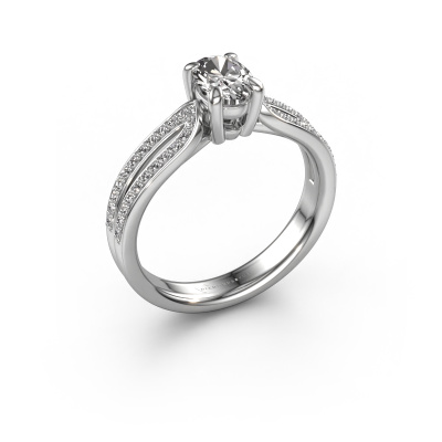 The ring shown above is called the Antonia ovl 2. We call this type of ring a pavé solitaire ring because it has one centre gemstone and a band that is also pave set with gemstones. The platinum engagement ring is set with a oval 0.60 crt diamond centre stone and the band is pave set with diamond gemstones. Each jewel is unique in every way! Simply customize to your liking,This contemporary platinum pavé solitaire engagement ring has an exquisite oval diamond centre stone. To further accentuate the centre stone, the band is fully set with more diamonds. Its open prong setting allows light to strike the diamond from various angles and this adds sparkle to your diamond ring. The photo shown above depicts the goldsmith's carefully handcrafted details of the ring. The high positioning of the centre stone is truly eye-catching. The perfect engagement ring for the crown jewel of your life! By using a combination of the latest modern techniques, combined with ancient crafting, we can make all our engagement rings in our own studio. Each jewel is made to order. This is advantageous because we can offer you a price you won't find anywhere else.Our team adds new designs to our online collection daily. Our designers and goldsmiths work together in creating the best design. We strive to offer a diverse collection of jewels. Perhaps you have a specific jewel design in mind. One you came across somewhere. Please contact us for a free consultation. We will make you an offer, based on a fair price/ quality ratio, that will baffle you.To make it easier for you, we offer a 30 day return policy. Check our terms and conditions.