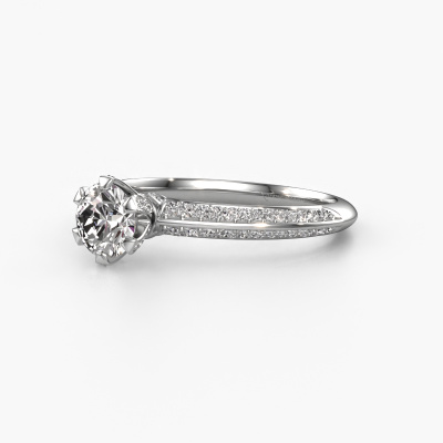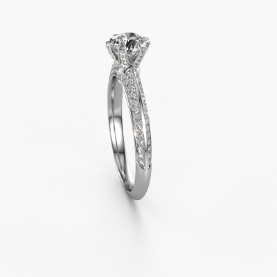 The ring shown above is called the Abby. We call this type of ring a pavé solitaire ring because it has one centre gemstone and a band that is also pave set with gemstones. The platinum engagement ring is set with a round 0.60 crt diamond centre stone and the band is pave set with diamond gemstones. Each jewel is made just for you by our master goldsmiths in our own studio.This exclusive platinum pavé solitaire engagement ring has an exquisite round diamond centre stone. To further accentuate the centre stone, the band is fully set with more diamonds. Its open prong setting allows light to strike the diamond from various angles and this adds sparkle to your diamond ring. The photo shown above depicts the goldsmith's carefully handcrafted details of the ring. The high positioning of the centre stone is truly eye-catching. The perfect engagement ring for the crown jewel of your life! Are you on a budget? Please feel free to contact us, so we can go discuss your options. We offer our engagement rings at guaranteed best price, because we make them to order. You won't find such a price anywhere else!Our team adds new designs to our online collection daily. Our designers and goldsmiths work together in creating the best design. We strive to offer a diverse collection of jewels. Perhaps you have a specific jewel design in mind. One you came across somewhere. Please contact us for a free consultation. We will make you an offer, based on a fair price/ quality ratio, that will baffle you.To make it easier for you, we offer a 30 day return policy. Check our terms and conditions.