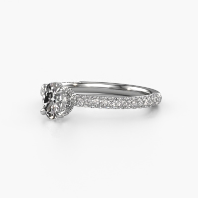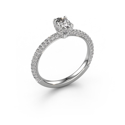 The ring shown above is called the Saskia 2 ovl. We call this type of ring a pavé solitaire ring because it has one centre gemstone and a band that is also pave set with gemstones. The platinum engagement ring is set with a oval 0.40 crt diamond centre stone and the band is pave set with lab grown diamond gemstones. Each jewel is made just for you by our master goldsmiths in our own studio.This exclusive platinum pavé solitaire engagement ring has an exquisite oval diamond centre stone. To further accentuate the centre stone, the band is fully set with more lab-grown diamonds. Its open prong setting allows light to strike the diamond from various angles and this adds sparkle to your diamond ring. The photo shown above depicts the goldsmith's carefully handcrafted details of the ring. The high positioning of the centre stone is truly eye-catching. The perfect engagement ring for the crown jewel of your life! After receiving your order, our goldsmiths will passionately start the creative process of making your engagement ring in our own studio. Because we don't have a big stockpile, these costs will not be passed on to you. Our pricing is proof of that! We offer top quality jewels at lowest price, guaranteed.Have you found a specific engagement ring somewhere which you would like to give to your loved one? Please feel free to express your wishes to our jewel designers because we would be honoured to turn your design into a exclusive engagement ring. You can follow the development of your ring design because we use 3D drawings. This gives you a realistic preview of how your design will look. You can also preorder a dummy. A dummy is a plastic ring, which can be shaped according your ring design. You can try it on and check if its width and size are suitable for you. We will gladly send you a non-binding offer, based on a fair price/ quality ratio. It will amaze you, considering the quality of the ring and gemstones.To make it easier for you, we offer a 30 day return policy. Check our terms and conditions.