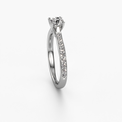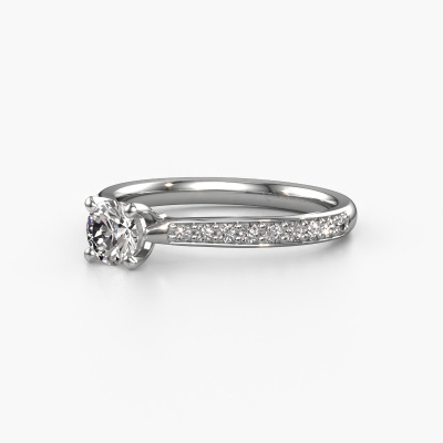 The ring shown above is called the Mignon rnd 2. We call this type of ring a pavé solitaire ring because it has one centre gemstone and a band that is also pave set with gemstones. The platinum engagement ring is set with a round 0.40 crt diamond centre stone and the band is pave set with lab grown diamond gemstones. Each jewel is made by a team of passionate goldsmiths and jewel designers. This will make your crown jewel truly eye-catching.This luxury platinum pavé solitaire engagement ring has an exquisite round diamond centre stone. To further accentuate the centre stone, the band is fully set with more lab-grown diamonds. Its open prong setting allows light to strike the diamond from various angles and this adds sparkle to your diamond ring. The photo shown above depicts the goldsmith's carefully handcrafted details of the ring. The high positioning of the centre stone is truly eye-catching. The perfect engagement ring for the crown jewel of your life! By using our modern techniques, we can design and customize the finest quality jewels with the utmost care for you. Our engagement rings are always priced 30 percent lower than other jewellers. We make engagement rings to order so we don't have to maintain a large stock. If you have a certain budget, we are more than happy to advice you accordingly.Different styles of new rings are made daily by our team. Perhaps you have found a pavé solitaire engagement ring somewhere. One you would like to give to your loved one. Please feel free to share your thoughts and design with our jewel designers. We would love to turn your design into a luxury engagement ring. You can follow the development of your ring design because we use very detailed 3D drawings. On top of that, you can order a dummy of the design. A dummy is a plastic ring, which can be shaped according your ring design. You can try it on and check if the engagement ring is up to standard. We will gladly send you a non-binding offer, based on a fair price/ quality ratio. The offer will baffle you, considering the quality of the ring and gemstones.To make it easier for you, we offer a 30 day return policy. Check our terms and conditions.
