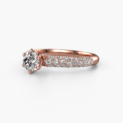 The ring shown above is called the Meryl. We call this type of ring a pavé solitaire ring because it has one centre gemstone and a band that is also pave set with gemstones. This engagement ring is made in 14 Carat rose gold set with a 0.60 crt round diamond, and pave set diamonds at the sides. Each piece of jewellery is made just for you, with attention to detail and design.This exclusive rose gold pavé solitaire engagement ring has an exquisite round diamond centre stone. To further accentuate the centre stone, the band is set full with more diamonds. Its open prong setting allows light to strike the diamond from various angles and this adds sparkle to your diamond ring. The photo shown above depicts the goldsmith's carefully handcrafted details of the ring. The high positioning of the centre stone is truly eye-catching. The perfect engagement ring for the crown jewel of your life!After receiving your order, our goldsmiths will passionately start the creative process of making your engagement ring in our own studio. Because we don't have a big stockpile, these costs will not be passed on to you. Our pricing is proof of that! We offer top quality jewels at lowest price, guaranteed.Have you found a specific engagement ring somewhere which you would like to give to your loved one? Please feel free to express your wishes to our jewel designers because we would be honoured to turn your design into a exclusive engagement ring. You can follow the development of your ring design because we use 3D drawings. This gives you a realistic preview of how your design will look. You can also preorder a dummy. A dummy is a plastic ring, which can be shaped according your ring design. You can try it on and check if its width and size are suitable for you. We will gladly send you a non-binding offer, based on a fair price/ quality ratio. It will amaze you, considering the quality of the ring and gemstones.To make it easier for you, we offer a 30 day return policy. Check our terms and conditions.