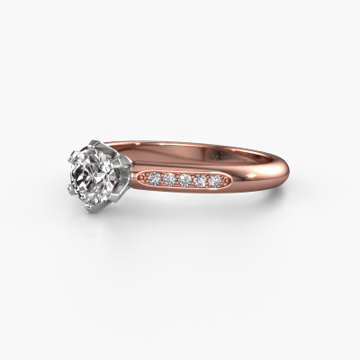 The ring shown above is called the Tiffy 2. We call this type of ring a pavé solitaire ring because it has one centre gemstone and a band that is also pave set with gemstones. This engagement ring is made in 14 Carat rose gold set with a 0.50 crt round diamond, and pave set diamonds at the sides. Each piece of jewellery is created to add sparkle to your finger, each jewel is lovingly made by hand by our goldsmiths.This traditional rose gold pavé solitaire engagement ring has an exquisite round diamond centre stone. To further accentuate the centre stone, the band is set full with more diamonds. Its open prong setting allows light to strike the diamond from various angles and this adds sparkle to your diamond ring. The photo shown above depicts the goldsmith's carefully handcrafted details of the ring. The high positioning of the centre stone is truly eye-catching. The perfect engagement ring for the crown jewel of your life!By using our modern techniques, we can design and customize the finest quality jewels with the utmost care for you. Our engagement rings are always priced 30 percent lower than other jewellers. We make engagement rings to order so we don't have to maintain a large stock. If you have a certain budget, we are more than happy to advice you accordingly.Our designers and goldsmiths work together each day, creating new jewels. Perhaps you have found a nice traditional engagement ring somewhere, which can be used to customize your unique ring. Please feel free to contact us. We will make you an offer, based on a fair price/ quality ratio, which will amaze you.To make it easier for you, we offer a 30 day return policy. Check our terms and conditions.