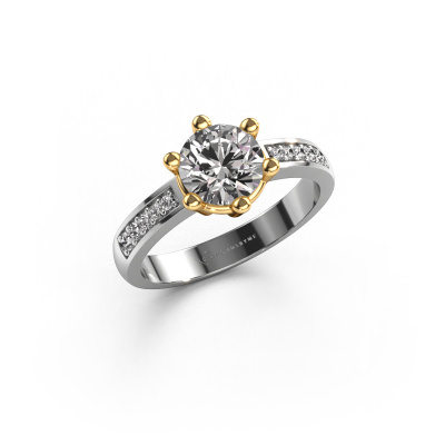 The ring shown above is called the Luna 2. We call this type of ring a pavé solitaire ring because it has one centre gemstone and a band that is also pave set with gemstones. This engagement ring is made in 14 Carat white gold set with a 1.00 crt round diamond, and pave set diamonds at the sides. Each piece of jewellery is unique in every way! Simply customize to your liking,This classic white gold pavé solitaire engagement ring has an exquisite round diamond centre stone. To further accentuate the centre stone, the band is set full with more diamonds. Its open prong setting allows light to strike the diamond from various angles and this adds sparkle to your diamond ring. The photo shown above depicts the goldsmith's carefully handcrafted details of the ring. The high positioning of the centre stone is truly eye-catching. The perfect engagement ring for the crown jewel of your life!Because we design and deliver our own rings, we can offer you a engagement ring at a price you won't find anywhere else. A ring is made to order, which helps prevent excess supplies, so we can make you a great price offer. We understand it feels risky, buying your engagement ring online, but we will gladly assist in the designing process, taking your budget into consideration.Our team adds new designs to our online collection daily. Our designers and goldsmiths work together in creating the best design. We strive to offer a diverse collection of jewels. Perhaps you have a specific jewel design in mind. One you came across somewhere. Please contact us for a free consultation. We will make you an offer, based on a fair price/ quality ratio, that will baffle you.To make it easier for you, we offer a 30 day return policy. Check our terms and conditions.