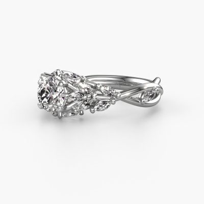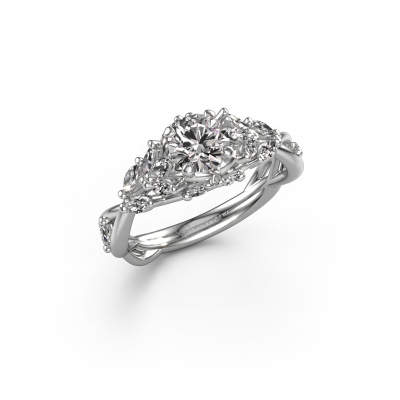 The ring shown above is called the Samantha RND. We call this type of ring a pavé solitaire ring because it has one centre gemstone and a band that is also pave set with gemstones. This engagement ring is made in 14 Carat white gold set with a 0.60 crt round diamond, and pave set diamonds at the sides. Each piece of jewellery is made with passion and love by one of our master goldsmiths.This contemporary white gold pavé solitaire engagement ring has an exquisite round diamond centre stone. To further accentuate the centre stone, the band is set full with more diamonds. Its open prong setting allows light to strike the diamond from various angles and this adds sparkle to your diamond ring. The photo shown above depicts the goldsmith's carefully handcrafted details of the ring. The high positioning of the centre stone is truly eye-catching. The perfect engagement ring for the crown jewel of your life!By using a combination of the latest modern techniques, combined with ancient crafting, we can make all our engagement rings in our own studio. Each jewel is made to order. This is advantageous because we can offer you a price you won't find anywhere else.Our designers and goldsmiths work together each day, creating new jewels. Perhaps you have found a nice contemporary engagement ring somewhere, which can be used to customize your unique ring. Please feel free to contact us. We will make you an offer, based on a fair price/ quality ratio, which will amaze you.To make it easier for you, we offer a 30 day return policy. Check our terms and conditions.