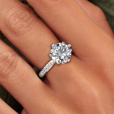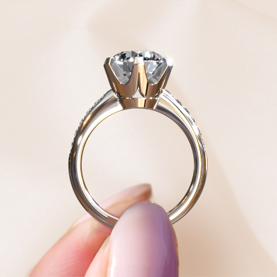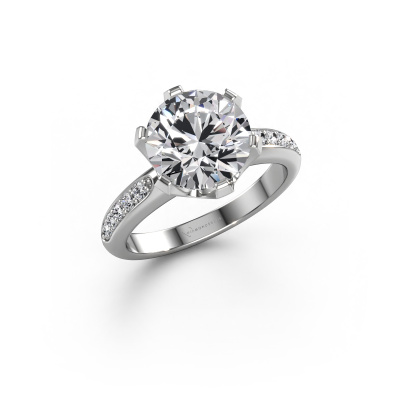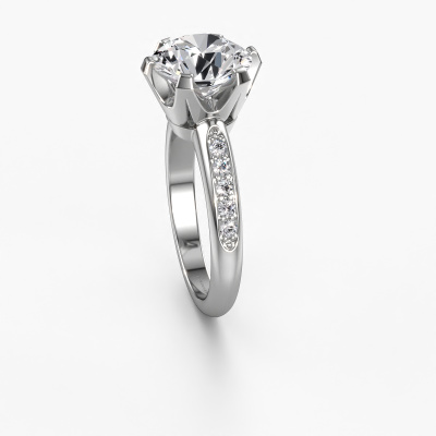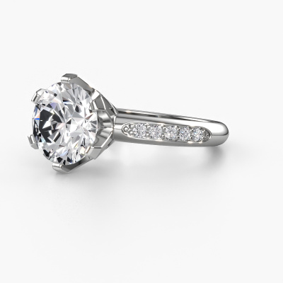 The ring shown above is called the Tiffy 2. We call this type of ring a pavé solitaire ring because it has one centre gemstone and a band that is also pave set with gemstones. This engagement ring is made in 14 Carat white gold set with a 2.00 crt round diamond, and pave set diamonds at the sides. Each piece of jewellery is created to add sparkle to your finger, each jewel is lovingly made by hand by our goldsmiths.This traditional white gold pavé solitaire engagement ring has an exquisite round diamond centre stone. To further accentuate the centre stone, the band is set full with more diamonds. Its open prong setting allows light to strike the diamond from various angles and this adds sparkle to your diamond ring. The photo shown above depicts the goldsmith's carefully handcrafted details of the ring. The high positioning of the centre stone is truly eye-catching. The perfect engagement ring for the crown jewel of your life!By using our modern techniques, we can design and customize the finest quality jewels with the utmost care for you. Our engagement rings are always priced 30 percent lower than other jewellers. We make engagement rings to order so we don't have to maintain a large stock. If you have a certain budget, we are more than happy to advice you accordingly.Our designers and goldsmiths work together each day, creating new jewels. Perhaps you have found a nice traditional engagement ring somewhere, which can be used to customize your unique ring. Please feel free to contact us. We will make you an offer, based on a fair price/ quality ratio, which will amaze you.To make it easier for you, we offer a 30 day return policy. Check our terms and conditions.