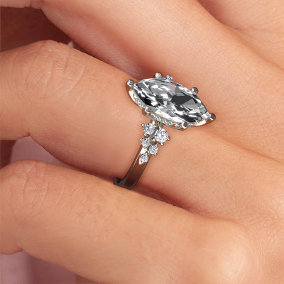 This 14 Carat white gold ring is called Emma MRQ and is set with diamond. How would you describe the style of the love of your life? Does she have a unique sense of style? This stunning special white gold engagement ring can be custom-made to your own or her liking. Our diamonds gemstones have been carefully selected because we believe your trendy engagement ring must be adorned with nothing but the most beautiful gemstone. Don't you agree? This jewel is made just for you, with attention to detail and design.After receiving your order, our goldsmiths will passionately start the creative process of making your engagement ring in our own studio. Because we don't have a big stockpile, these costs will not be passed on to you. Our pricing is proof of that! We offer top quality jewels at lowest price, guaranteed.Do you have a specific ring in mind? One you came across somewhere. Please feel free to tell us your wishes and we will turn your design into a unique engagement ring. You can follow the development of your ring design because we use 3D drawings. This gives you a realistic preview of your design. We will gladly send you a non-binding offer, based on a fair price/ quality ratio. It will amaze you.To make it easier for you, we offer a 30 day return policy. Check our terms and conditions.