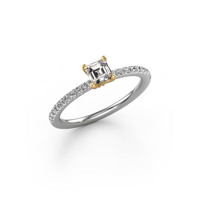The ring shown above is called the Crystal ASSC 2. We call this type of ring a pavé solitaire ring because it has one centre gemstone and a band that is also pave set with gemstones. The 14 Carat white gold engagement ring is set with a asscher 0.35 crt diamond centre stone and the band is pave set with diamond gemstones. Each jewel is made just for you, with attention to detail and design.This luxury white gold pavé solitaire engagement ring has an exquisite asscher diamond centre stone. To further accentuate the centre stone, the band is fully set with more diamonds. Its open prong setting allows light to strike the diamond from various angles and this adds sparkle to your diamond ring. The photo shown above depicts the goldsmith's carefully handcrafted details of the ring. The high positioning of the centre stone is truly eye-catching. The perfect engagement ring for the crown jewel of your life! After receiving your order, our goldsmiths will passionately start the creative process of making your engagement ring in our own studio. Because we don't have a big stockpile, these costs will not be passed on to you. Our pricing is proof of that! We offer top quality jewels at lowest price, guaranteed.Our designers and goldsmiths work together each day, creating new jewels. Perhaps you have found a nice luxury engagement ring somewhere, which can be used to customize your unique ring. Please feel free to contact us. We will make you an offer, based on a fair price/ quality ratio, which will amaze you.To make it easier for you, we offer a 30 day return policy. Check our terms and conditions.