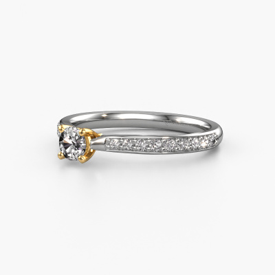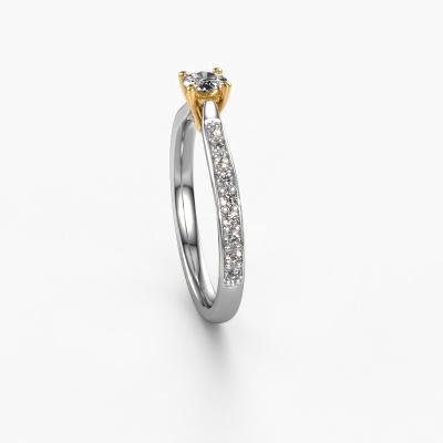 The ring shown above is called the Mignon rnd 2. We call this type of ring a pavé solitaire ring because it has one centre gemstone and a band that is also pave set with gemstones. The 14 Carat white gold engagement ring is set with a round 0.25 crt diamond centre stone and the band is pave set with lab grown diamond gemstones. Each jewel is made by a team of passionate goldsmiths and jewel designers. This will make your crown jewel truly eye-catching.This luxury white gold pavé solitaire engagement ring has an exquisite round diamond centre stone. To further accentuate the centre stone, the band is fully set with more lab-grown diamonds. Its open prong setting allows light to strike the diamond from various angles and this adds sparkle to your diamond ring. The photo shown above depicts the goldsmith's carefully handcrafted details of the ring. The high positioning of the centre stone is truly eye-catching. The perfect engagement ring for the crown jewel of your life! By using our modern techniques, we can design and customize the finest quality jewels with the utmost care for you. Our engagement rings are always priced 30 percent lower than other jewellers. We make engagement rings to order so we don't have to maintain a large stock. If you have a certain budget, we are more than happy to advice you accordingly.Different styles of new rings are made daily by our team. Perhaps you have found a pavé solitaire engagement ring somewhere. One you would like to give to your loved one. Please feel free to share your thoughts and design with our jewel designers. We would love to turn your design into a luxury engagement ring. You can follow the development of your ring design because we use very detailed 3D drawings. On top of that, you can order a dummy of the design. A dummy is a plastic ring, which can be shaped according your ring design. You can try it on and check if the engagement ring is up to standard. We will gladly send you a non-binding offer, based on a fair price/ quality ratio. The offer will baffle you, considering the quality of the ring and gemstones.To make it easier for you, we offer a 30 day return policy. Check our terms and conditions.