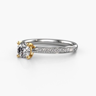 The ring shown above is called the Mignon rnd 2. We call this type of ring a pavé solitaire ring because it has one centre gemstone and a band that is also pave set with gemstones. The 14 Carat white gold engagement ring is set with a round 0.60 crt diamond centre stone and the band is pave set with lab grown diamond gemstones. Each jewel is made by a team of passionate goldsmiths and jewel designers. This will make your crown jewel truly eye-catching.This luxury white gold pavé solitaire engagement ring has an exquisite round diamond centre stone. To further accentuate the centre stone, the band is fully set with more lab-grown diamonds. Its open prong setting allows light to strike the diamond from various angles and this adds sparkle to your diamond ring. The photo shown above depicts the goldsmith's carefully handcrafted details of the ring. The high positioning of the centre stone is truly eye-catching. The perfect engagement ring for the crown jewel of your life! By using our modern techniques, we can design and customize the finest quality jewels with the utmost care for you. Our engagement rings are always priced 30 percent lower than other jewellers. We make engagement rings to order so we don't have to maintain a large stock. If you have a certain budget, we are more than happy to advice you accordingly.Different styles of new rings are made daily by our team. Perhaps you have found a pavé solitaire engagement ring somewhere. One you would like to give to your loved one. Please feel free to share your thoughts and design with our jewel designers. We would love to turn your design into a luxury engagement ring. You can follow the development of your ring design because we use very detailed 3D drawings. On top of that, you can order a dummy of the design. A dummy is a plastic ring, which can be shaped according your ring design. You can try it on and check if the engagement ring is up to standard. We will gladly send you a non-binding offer, based on a fair price/ quality ratio. The offer will baffle you, considering the quality of the ring and gemstones.To make it easier for you, we offer a 30 day return policy. Check our terms and conditions.