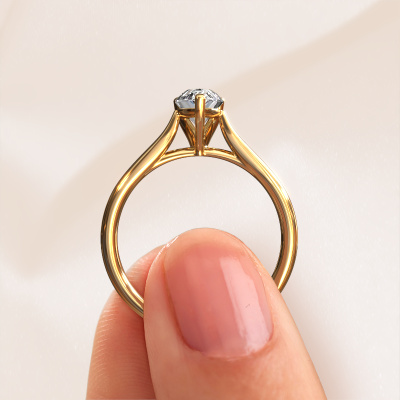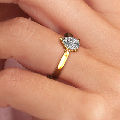 The ring shown above is called the Mignon per 1, we call this a solitaire ring because it contains a single gemstone. The engagement ring is made in 14 Carat gold and has a pear diamond of 1.00 crt. The cool thing about our configurator is that you can compile your own piece of jewellery, into a completely personalized one. This solitaire ring is crafted in the precious metals gold with gold, but of course you are free to pick your own colours. Each piece of jewellery is created to add sparkle to your finger, each jewel is lovingly made by hand by our goldsmiths.The solitaire ring is a special type of engagement ring. Its open prong setting allows light to strike the gemstone from various angles. This classic engagement ring is a stunning eye-catcher because of the high positioning of the gemstone. In order for you to commemorate your proposal with a unique ring, we carefully adorn this solitaire ring by hand. The love of your life deserves nothing but the best. After receiving your order, our goldsmiths will start the creative process of making your Mignon per 1 engagement ring. We don't keep stock. This is advantageous because these costs will not be passed on to you. Therefore, we can offer jewellery at exceptionally low prices.Our team adds new designs to our online collection daily. Our designers and goldsmiths work together in creating the best design. We strive to offer a diverse collection of jewels. Perhaps you have a specific jewel design in mind. One you came across somewhere. Please contact us for a free consultation. We will make you an offer, based on a fair price/ quality ratio, that will baffle you.To make it easier for you, we offer a 30 day return policy. Check our terms and conditions.