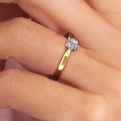 The ring shown above is called the Mignon rnd 1, we call this a solitaire ring because it contains a single gemstone. The engagement ring is made in 14 Carat gold and has a round diamond of 0.30 crt. The cool thing about our configurator is that you can compile your own piece of jewellery, into a completely personalized one. This solitaire ring is crafted in the precious metals gold with white gold, but of course you are free to pick your own colours. Each piece of jewellery is made with passion and love by one of our master goldsmiths.The solitaire ring is a special type of engagement ring. Its open prong setting allows light to strike the gemstone from various angles. This classic engagement ring is a stunning eye-catcher because of the high positioning of the gemstone. In order for you to commemorate your proposal with a unique ring, we carefully adorn this solitaire ring by hand. The love of your life deserves nothing but the best. After receiving your order, our goldsmiths will passionately start the creative process of making your engagement ring in our own studio. Because we don't have a big stockpile, these costs will not be passed on to you. Our pricing is proof of that! We offer top quality jewels at lowest price, guaranteed.Have you found a specific engagement ring somewhere which you would like to give to your loved one? Please feel free to express your wishes to our jewel designers because we would be honoured to turn your design into a classic engagement ring. You can follow the development of your ring design because we use 3D drawings. This gives you a realistic preview of how your design will look. You can also preorder a dummy. A dummy is a plastic ring, which can be shaped according your ring design. You can try it on and check if its width and size are suitable for you. We will gladly send you a non-binding offer, based on a fair price/ quality ratio. It will amaze you, considering the quality of the ring and gemstones.To make it easier for you, we offer a 30 day return policy. Check our terms and conditions.