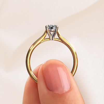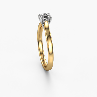 The ring shown above is called the Mignon rnd 1, we call this a solitaire ring because it contains a single gemstone. The engagement ring is made in 14 Carat gold and has a round diamond of 0.50 crt. The cool thing about our configurator is that you can compile your own piece of jewellery, into a completely personalized one. This solitaire ring is crafted in the precious metals gold with white gold, but of course you are free to pick your own colours. Each piece of jewellery is made with passion and love by one of our master goldsmiths.The solitaire ring is a special type of engagement ring. Its open prong setting allows light to strike the gemstone from various angles. This classic engagement ring is a stunning eye-catcher because of the high positioning of the gemstone. In order for you to commemorate your proposal with a unique ring, we carefully adorn this solitaire ring by hand. The love of your life deserves nothing but the best. After receiving your order, our goldsmiths will passionately start the creative process of making your engagement ring in our own studio. Because we don't have a big stockpile, these costs will not be passed on to you. Our pricing is proof of that! We offer top quality jewels at lowest price, guaranteed.Have you found a specific engagement ring somewhere which you would like to give to your loved one? Please feel free to express your wishes to our jewel designers because we would be honoured to turn your design into a classic engagement ring. You can follow the development of your ring design because we use 3D drawings. This gives you a realistic preview of how your design will look. You can also preorder a dummy. A dummy is a plastic ring, which can be shaped according your ring design. You can try it on and check if its width and size are suitable for you. We will gladly send you a non-binding offer, based on a fair price/ quality ratio. It will amaze you, considering the quality of the ring and gemstones.To make it easier for you, we offer a 30 day return policy. Check our terms and conditions.