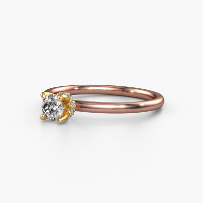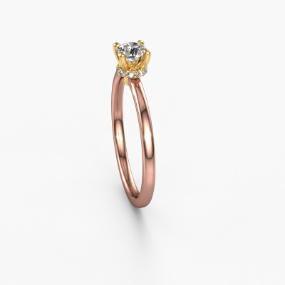 The ring shown above is called the Crystal RND 3, we call this a solitaire ring because it contains a single gemstone. The engagement ring is made in 14 Carat rose gold and has a round diamond of 0.25 crt. The cool thing about our configurator is that you can compile your own piece of jewellery, into a completely personalized one. This solitaire ring is crafted in the precious metals rose gold with gold, but of course you are free to pick your own colours. Each piece of jewellery is made with passion and love by one of our master goldsmiths.The solitaire ring is a special type of engagement ring. Its open prong setting allows light to strike the gemstone from various angles. This classic engagement ring is a stunning eye-catcher because of the high positioning of the gemstone. In order for you to commemorate your proposal with a unique ring, we carefully adorn this solitaire ring by hand. The love of your life deserves nothing but the best. By using a combination of the latest modern techniques, combined with ancient crafting, we can make all our engagement rings in our own studio. Each jewel is made to order. This is advantageous because we can offer you a price you won't find anywhere else.Different styles of new rings are made daily by our team. Perhaps you have found a solitaire engagement ring somewhere. One you would like to give to your loved one. Please feel free to share your thoughts and design with our jewel designers. We would love to turn your design into a classic engagement ring. You can follow the development of your ring design because we use very detailed 3D drawings. On top of that, you can order a dummy of the design. A dummy is a plastic ring, which can be shaped according your ring design. You can try it on and check if the engagement ring is up to standard. We will gladly send you a non-binding offer, based on a fair price/ quality ratio. The offer will baffle you, considering the quality of the ring and gemstones.To make it easier for you, we offer a 30 day return policy. Check our terms and conditions.