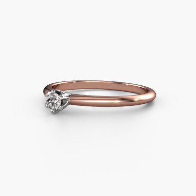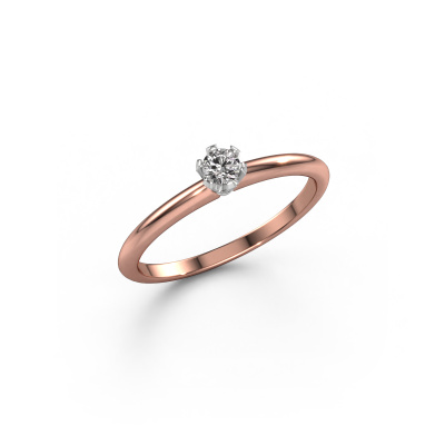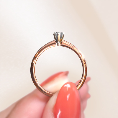 The ring shown above is called the Tiffy 1, we call this a solitaire ring because it contains a single gemstone. The engagement ring is made in 14 Carat rose gold and has a round diamond of 0.10 crt. The cool thing about our configurator is that you can compile your own piece of jewellery, into a completely personalized one. This solitaire ring is crafted in the precious metals rose gold with white gold, but of course you are free to pick your own colours. Each piece of jewellery is made just for you, with attention to detail and design.The solitaire ring is a special type of engagement ring. Its open prong setting allows light to strike the gemstone from various angles. This classic engagement ring is a stunning eye-catcher because of the high positioning of the gemstone. In order for you to commemorate your proposal with a unique ring, we carefully adorn this solitaire ring by hand. The love of your life deserves nothing but the best. By using our modern techniques, we can design and customize the finest quality jewels with the utmost care for you. Our engagement rings are always priced 30 percent lower than other jewellers. We make engagement rings to order so we don't have to maintain a large stock. If you have a certain budget, we are more than happy to advice you accordingly.Our designers and goldsmiths work together each day, creating new jewels. Perhaps you have found a nice classic engagement ring somewhere, which can be used to customize your unique ring. Please feel free to contact us. We will make you an offer, based on a fair price/ quality ratio, which will amaze you.To make it easier for you, we offer a 30 day return policy. Check our terms and conditions.