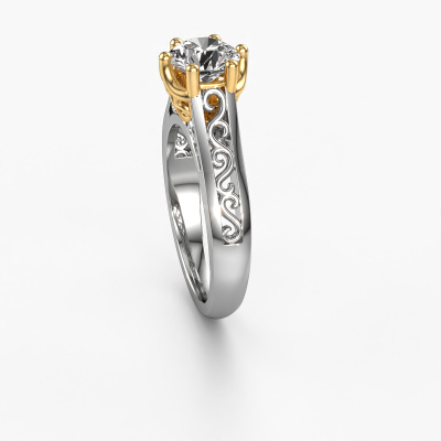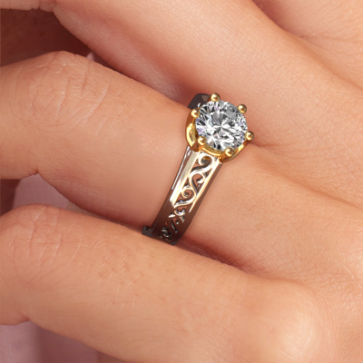 The ring shown above is called the Shan, we call this a solitaire ring because it contains a single gemstone. The engagement ring is made in 14 Carat white gold and has a round diamond of 1.00 crt. The cool thing about our configurator is that you can compile your own piece of jewellery, into a completely personalized one. This solitaire ring is crafted in the precious metals white gold with gold, but of course you are free to pick your own colours. Each piece of jewellery is made by a team of passionate goldsmiths and jewel designers. This will make your crown jewel truly eye-catching.The solitaire ring is a special type of engagement ring. Its open prong setting allows light to strike the gemstone from various angles. This Celtic engagement ring is a stunning eye-catcher because of the high positioning of the gemstone. In order for you to commemorate your proposal with a unique ring, we carefully adorn this solitaire ring by hand. The love of your life deserves nothing but the best. By using our modern techniques, we can design and customize the finest quality jewels with the utmost care for you. Our engagement rings are always priced 30 percent lower than other jewellers. We make engagement rings to order so we don't have to maintain a large stock. If you have a certain budget, we are more than happy to advice you accordingly.Have you found a specific engagement ring somewhere which you would like to give to your loved one? Please feel free to express your wishes to our jewel designers because we would be honoured to turn your design into a Celtic engagement ring. You can follow the development of your ring design because we use 3D drawings. This gives you a realistic preview of how your design will look. You can also preorder a dummy. A dummy is a plastic ring, which can be shaped according your ring design. You can try it on and check if its width and size are suitable for you. We will gladly send you a non-binding offer, based on a fair price/ quality ratio. It will amaze you, considering the quality of the ring and gemstones.To make it easier for you, we offer a 30 day return policy. Check our terms and conditions.