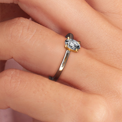 The ring shown above is called the Crystal OVL 1, we call this a solitaire ring because it contains a single gemstone. The engagement ring is made in 14 Carat white gold and has a oval diamond of 0.40 crt. The cool thing about our configurator is that you can compile your own piece of jewellery, into a completely personalized one. This solitaire ring is crafted in the precious metals white gold with gold, but of course you are free to pick your own colours. Each piece of jewellery is created to add sparkle to your finger, each jewel is lovingly made by hand by our goldsmiths.The solitaire ring is a special type of engagement ring. Its open prong setting allows light to strike the gemstone from various angles. This classic engagement ring is a stunning eye-catcher because of the high positioning of the gemstone. In order for you to commemorate your proposal with a unique ring, we carefully adorn this solitaire ring by hand. The love of your life deserves nothing but the best. Because we design and deliver our own rings, we can offer you a engagement ring at a price you won't find anywhere else. A ring is made to order, which helps prevent excess supplies, so we can make you a great price offer. We understand it feels risky, buying your engagement ring online, but we will gladly assist in the designing process, taking your budget into consideration.Our team adds new designs to our online collection daily. Our designers and goldsmiths work together in creating the best design. We strive to offer a diverse collection of jewels. Perhaps you have a specific jewel design in mind. One you came across somewhere. Please contact us for a free consultation. We will make you an offer, based on a fair price/ quality ratio, that will baffle you.To make it easier for you, we offer a 30 day return policy. Check our terms and conditions.