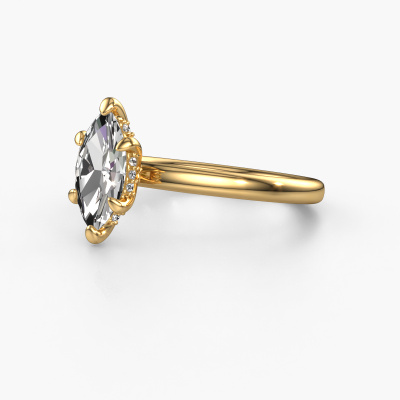 This 14 Carat gold ring is called Simone MRQ 2 and is set with 1.04 crt diamond. What is it that makes your relationship unique? What is it about her that makes you want to bend down on one knee? The unique bond between the two of you is emphasized by an equally unique ring. A one of a kind round solitaire engagement ring made especially for her. That is why this fantasy ring fits her like a glove. Each specific detail of this round gold diamond set engagement ring is hand-picked, crafted and polished by our expert goldsmith. The result is an exquisite ring, unique and perfectly crafted to perfection. That is what our expert Goldsmiths strive for. This jewel is made just for you by our master goldsmiths in our own studio.Because we design and deliver our own rings, we can offer you a engagement ring at a price you won't find anywhere else. A ring is made to order, which helps prevent excess supplies, so we can make you a great price offer. We understand it feels risky, buying your engagement ring online, but we will gladly assist in the designing process, taking your budget into consideration.Our designers and goldsmiths work together each day, creating new jewels. Perhaps you have found a nice fantasy engagement ring somewhere, which can be used to customize your unique ring. Please feel free to contact us. We will make you an offer, based on a fair price/ quality ratio, which will amaze you.To make it easier for you, we offer a 30 day return policy. Check our terms and conditions.