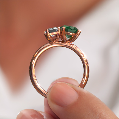 This 14 Carat rose gold ring is called Toi et Moi OVL-EME and is set with 9x7 mm emerald. What is it that makes your relationship unique? What is it about her that makes you want to bend down on one knee? The unique bond between the two of you is emphasized by an equally unique ring. A one of a kind charming 2 stone engagement ring made especially for her. That is why this exclusive ring fits her like a glove. Each specific detail of this charming rose gold emerald set engagement ring is hand-picked, crafted and polished by our expert goldsmith. The result is an exquisite ring, unique and perfectly crafted to perfection. That is what our expert Goldsmiths strive for. This jewel is made just for you, with attention to detail and design.After receiving your order, our goldsmiths will start the creative process of making your Toi et Moi OVL-EME engagement ring. We don't keep stock. This is advantageous because these costs will not be passed on to you. Therefore, we can offer jewellery at exceptionally low prices.Our team adds new designs to our online collection daily. Our designers and goldsmiths work together in creating the best design. We strive to offer a diverse collection of jewels. Perhaps you have a specific jewel design in mind. One you came across somewhere. Please contact us for a free consultation. We will make you an offer, based on a fair price/ quality ratio, that will baffle you.To make it easier for you, we offer a 30 day return policy. Check our terms and conditions.