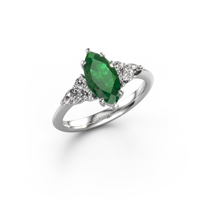 This platinum ring is called Melani MRQ and is set with 11x5.5 mm emerald. What is it that makes your relationship unique? What is it about her that makes you want to bend down on one knee? The unique bond between the two of you is emphasized by an equally unique ring. A one of a kind graceful cluster engagement ring made especially for her. That is why this trendy ring fits her like a glove. Each specific detail of this graceful platinum emerald set engagement ring is hand-picked, crafted and polished by our expert goldsmith. The result is an exquisite ring, unique and perfectly crafted to perfection. That is what our expert Goldsmiths strive for. This jewel is made just for you, with attention to detail and design.After receiving your order, our goldsmiths will passionately start the creative process of making your engagement ring in our own studio. Because we don't have a big stockpile, these costs will not be passed on to you. Our pricing is proof of that! We offer top quality jewels at lowest price, guaranteed.Do you have a specific ring in mind? One you came across somewhere. Please feel free to tell us your wishes and we will turn your design into a unique engagement ring. You can follow the development of your ring design because we use 3D drawings. This gives you a realistic preview of your design. We will gladly send you a non-binding offer, based on a fair price/ quality ratio. It will amaze you.To make it easier for you, we offer a 30 day return policy. Check our terms and conditions.