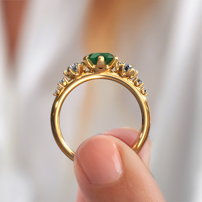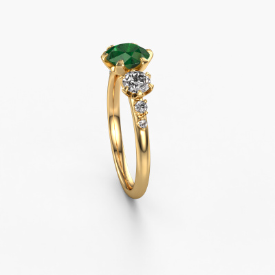 This 14 Carat gold ring is called Aniek RND and is set with emerald. How would you describe the style of the love of your life? Does she have a unique sense of style? This stunning graceful gold engagement ring can be custom-made to your own or her liking. Our emerald gemstones have been carefully selected because we believe your fantasy engagement ring must be adorned with nothing but the most beautiful gemstone. Don't you agree? This jewel is made just for you by our master goldsmiths in our own studio.Are you on a budget? Please feel free to contact us, so we can go discuss your options. We offer our engagement rings at guaranteed best price, because we make them to order. You won't find such a price anywhere else!Have you found a specific engagement ring somewhere which you would like to give to your loved one? Please feel free to express your wishes to our jewel designers because we would be honoured to turn your design into a fantasy engagement ring. You can follow the development of your ring design because we use 3D drawings. This gives you a realistic preview of how your design will look. You can also preorder a dummy. A dummy is a plastic ring, which can be shaped according your ring design. You can try it on and check if its width and size are suitable for you. We will gladly send you a non-binding offer, based on a fair price/ quality ratio. It will amaze you, considering the quality of the ring and gemstones.To make it easier for you, we offer a 30 day return policy. Check our terms and conditions.