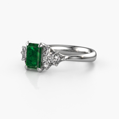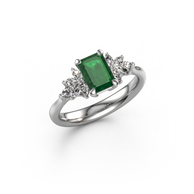 This platinum ring is called Fiona EME and is set with 7x5 mm emerald. What is it that makes your relationship unique? What is it about her that makes you want to bend down on one knee? The unique bond between the two of you is emphasized by an equally unique ring. A one of a kind special pavé solitaire engagement ring made especially for her. That is why this vintage ring fits her like a glove. Each specific detail of this special platinum emerald set engagement ring is hand-picked, crafted and polished by our expert goldsmith. The result is an exquisite ring, unique and perfectly crafted to perfection. That is what our expert Goldsmiths strive for. This jewel is created to add sparkle to your finger, each jewel is lovingly made by hand by our goldsmiths.Because we design and deliver our own rings, we can offer you a engagement ring at a price you won't find anywhere else. A ring is made to order, which helps prevent excess supplies, so we can make you a great price offer. We understand it feels risky, buying your engagement ring online, but we will gladly assist in the designing process, taking your budget into consideration.Our team adds new designs to our online collection daily. Our designers and goldsmiths work together in creating the best design. We strive to offer a diverse collection of jewels. Perhaps you have a specific jewel design in mind. One you came across somewhere. Please contact us for a free consultation. We will make you an offer, based on a fair price/ quality ratio, that will baffle you.To make it easier for you, we offer a 30 day return policy. Check our terms and conditions.