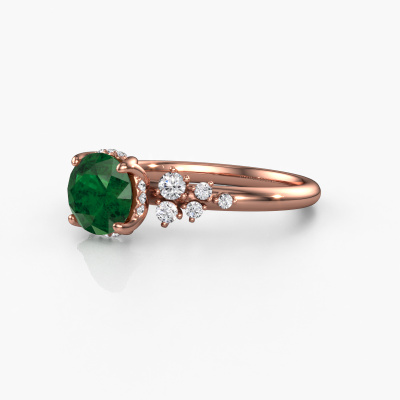 This 14 Carat rose gold ring is called Emma RND and is set with emerald. How would you describe the style of the love of your life? Does she have a unique sense of style? This stunning refined rose gold engagement ring can be custom-made to your own or her liking. Our emerald gemstones have been carefully selected because we believe your fantasy engagement ring must be adorned with nothing but the most beautiful gemstone. Don't you agree? This jewel is made just for you by our master goldsmiths in our own studio.By using our modern techniques, we can design and customize the finest quality jewels with the utmost care for you. Our engagement rings are always priced 30 percent lower than other jewellers. We make engagement rings to order so we don't have to maintain a large stock. If you have a certain budget, we are more than happy to advice you accordingly.Have you found a specific engagement ring somewhere which you would like to give to your loved one? Please feel free to express your wishes to our jewel designers because we would be honoured to turn your design into a fantasy engagement ring. You can follow the development of your ring design because we use 3D drawings. This gives you a realistic preview of how your design will look. You can also preorder a dummy. A dummy is a plastic ring, which can be shaped according your ring design. You can try it on and check if its width and size are suitable for you. We will gladly send you a non-binding offer, based on a fair price/ quality ratio. It will amaze you, considering the quality of the ring and gemstones.To make it easier for you, we offer a 30 day return policy. Check our terms and conditions.