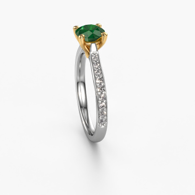 The ring shown above is called the Mignon rnd 2. We call this type of ring a pavé solitaire ring because it has one centre gemstone and a band that is also pave set with gemstones. The 14 Carat white gold engagement ring is set with a round 6 mm emerald centre stone and the band is pave set with lab grown diamond gemstones. Each jewel is made by a team of passionate goldsmiths and jewel designers. This will make your crown jewel truly eye-catching.This luxury white gold pavé solitaire engagement ring has an exquisite round emerald centre stone. To further accentuate the centre stone, the band is fully set with more lab-grown diamonds. Its open prong setting allows light to strike the emerald from various angles and this adds sparkle to your emerald ring. The photo shown above depicts the goldsmith's carefully handcrafted details of the ring. The high positioning of the centre stone is truly eye-catching. The perfect engagement ring for the crown jewel of your life! By using our modern techniques, we can design and customize the finest quality jewels with the utmost care for you. Our engagement rings are always priced 30 percent lower than other jewellers. We make engagement rings to order so we don't have to maintain a large stock. If you have a certain budget, we are more than happy to advice you accordingly.Different styles of new rings are made daily by our team. Perhaps you have found a pavé solitaire engagement ring somewhere. One you would like to give to your loved one. Please feel free to share your thoughts and design with our jewel designers. We would love to turn your design into a luxury engagement ring. You can follow the development of your ring design because we use very detailed 3D drawings. On top of that, you can order a dummy of the design. A dummy is a plastic ring, which can be shaped according your ring design. You can try it on and check if the engagement ring is up to standard. We will gladly send you a non-binding offer, based on a fair price/ quality ratio. The offer will baffle you, considering the quality of the ring and gemstones.To make it easier for you, we offer a 30 day return policy. Check our terms and conditions.