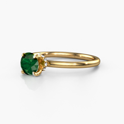 The ring shown above is called the Crystal RND 3, we call this a solitaire ring because it contains a single gemstone. The engagement ring is made in 14 Carat gold and has a round emerald of 5.5 mm. The cool thing about our configurator is that you can compile your own piece of jewellery, into a completely personalized one. This solitaire ring is crafted in the precious metals gold with gold, but of course you are free to pick your own colours. Each piece of jewellery is made with passion and love by one of our master goldsmiths.The solitaire ring is a special type of engagement ring. Its open prong setting allows light to strike the gemstone from various angles. This classic engagement ring is a stunning eye-catcher because of the high positioning of the gemstone. In order for you to commemorate your proposal with a unique ring, we carefully adorn this solitaire ring by hand. The love of your life deserves nothing but the best. By using a combination of the latest modern techniques, combined with ancient crafting, we can make all our engagement rings in our own studio. Each jewel is made to order. This is advantageous because we can offer you a price you won't find anywhere else.Different styles of new rings are made daily by our team. Perhaps you have found a solitaire engagement ring somewhere. One you would like to give to your loved one. Please feel free to share your thoughts and design with our jewel designers. We would love to turn your design into a classic engagement ring. You can follow the development of your ring design because we use very detailed 3D drawings. On top of that, you can order a dummy of the design. A dummy is a plastic ring, which can be shaped according your ring design. You can try it on and check if the engagement ring is up to standard. We will gladly send you a non-binding offer, based on a fair price/ quality ratio. The offer will baffle you, considering the quality of the ring and gemstones.To make it easier for you, we offer a 30 day return policy. Check our terms and conditions.