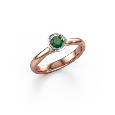 The ring shown above is called the Kaylee, we call this a solitaire ring because it contains a single gemstone. The Engagement ring is made in 14 Carat rose gold and has a round emerald of 4 mm. The cool thing about our configurator is that you can compile your own piece of jewellery, into a completely personalized one. This solitaire ring is crafted in the precious metals rose gold with white gold, but of course you are free to pick your own colours. Each piece of jewellery is made by a team of passionate goldsmiths and jewel designers. This will make your crown jewel truly eye-catching.The solitaire ring is a special type of Engagement ring. Its open prong setting allows light to strike the gemstone from various angles. This fashionable Engagement ring is a stunning eye-catcher because of the high positioning of the gemstone. In order for you to commemorate your proposal with a unique ring, we carefully adorn this solitaire ring by hand. The love of your life deserves nothing but the best. Because we design and deliver our own rings, we can offer you a Engagement ring at a price you won't find anywhere else. A ring is made to order, which helps prevent excess supplies, so we can make you a great price offer. We understand it feels risky, buying your Engagement ring online, but we will gladly assist in the designing process, taking your budget into consideration.Different styles of new rings are made daily by our team. Perhaps you have found a solitaire Engagement ring somewhere. One you would like to give to your loved one. Please feel free to share your thoughts and design with our jewel designers. We would love to turn your design into a fashionable Engagement ring. You can follow the development of your ring design because we use very detailed 3D drawings. On top of that, you can order a dummy of the design. A dummy is a plastic ring, which can be shaped according your ring design. You can try it on and check if the Engagement ring is up to standard. We will gladly send you a non-binding offer, based on a fair price/ quality ratio. The offer will baffle you, considering the quality of the ring and gemstones.To make it easier for you, we offer a 30 day return policy. Check our terms and conditions.