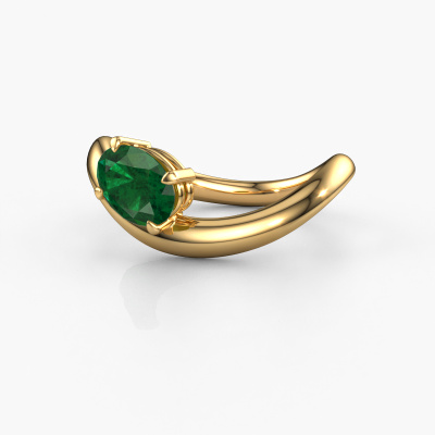In your eyes, no one else compares to her. She is one in a million, unlike anyone else and pure? These qualities are emphasized perfectly by our design gold solitaire emerald ring. This emerald is carefully selected by our keen artisan goldsmiths.