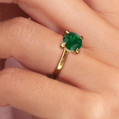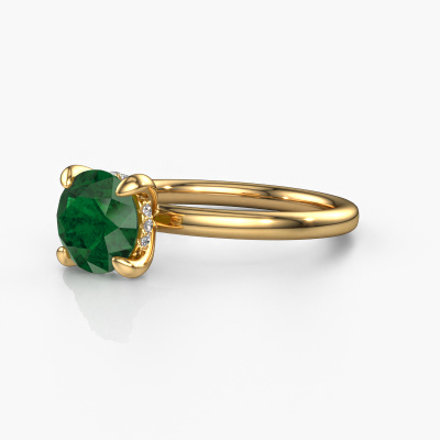 In your eyes, no one else compares to her. She is one in a million, unlike anyone else and pure? These qualities are emphasized perfectly by our exclusive gold solitaire emerald ring. This emerald is carefully selected by our keen artisan goldsmiths. It equals the unique qualities of the love of your life. There is no better way to memorialize your proposal than this symbol of true love. The ring shown above is called the Simone RND 2, we call this a solitaire ring because it contains a single gemstone. The engagement ring is made in 14 Carat gold and has a round emerald of 7.3 mm. Each piece of jewellery is unique in every way! Simply customize to your liking,After receiving your order, our goldsmiths will passionately start the creative process of making your engagement ring in our own studio. Because we don't have a big stockpile, these costs will not be passed on to you. Our pricing is proof of that! We offer top quality jewels at lowest price, guaranteed.Our team adds new designs to our online collection daily. Our designers and goldsmiths work together in creating the best design. We strive to offer a diverse collection of jewels. Perhaps you have a specific jewel design in mind. One you came across somewhere. Please contact us for a free consultation. We will make you an offer, based on a fair price/ quality ratio, that will baffle you.To make it easier for you, we offer a 30 day return policy. Check our terms and conditions.