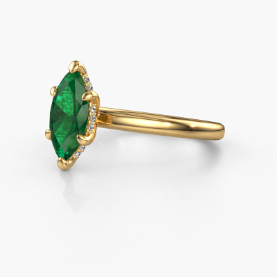 This 14 Carat gold ring is called Simone MRQ 2 and is set with 11x5.5 mm emerald. What is it that makes your relationship unique? What is it about her that makes you want to bend down on one knee? The unique bond between the two of you is emphasized by an equally unique ring. A one of a kind round solitaire engagement ring made especially for her. That is why this fantasy ring fits her like a glove. Each specific detail of this round gold emerald set engagement ring is hand-picked, crafted and polished by our expert goldsmith. The result is an exquisite ring, unique and perfectly crafted to perfection. That is what our expert Goldsmiths strive for. This jewel is made just for you by our master goldsmiths in our own studio.Because we design and deliver our own rings, we can offer you a engagement ring at a price you won't find anywhere else. A ring is made to order, which helps prevent excess supplies, so we can make you a great price offer. We understand it feels risky, buying your engagement ring online, but we will gladly assist in the designing process, taking your budget into consideration.Our designers and goldsmiths work together each day, creating new jewels. Perhaps you have found a nice fantasy engagement ring somewhere, which can be used to customize your unique ring. Please feel free to contact us. We will make you an offer, based on a fair price/ quality ratio, which will amaze you.To make it easier for you, we offer a 30 day return policy. Check our terms and conditions.