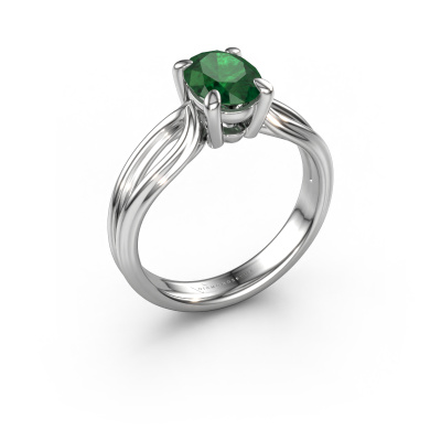 In your eyes, no one else compares to her. She is one in a million, unlike anyone else and pure? These qualities are emphasized perfectly by our contemporary platinum solitaire emerald ring. This emerald is carefully selected by our keen artisan goldsmiths. It equals the unique qualities of the love of your life. There is no better way to memorialize your proposal than this symbol of true love. The ring shown above is called the Antonia ovl 1, we call this a solitaire ring because it contains a single gemstone. The engagement ring is made in platinum and has a oval emerald of 8x6 mm. Each piece of jewellery is made with passion and love by one of our master goldsmiths.After receiving your order, our goldsmiths will start the creative process of making your Antonia ovl 1 engagement ring. We don't keep stock. This is advantageous because these costs will not be passed on to you. Therefore, we can offer jewellery at exceptionally low prices.Our team adds new designs to our online collection daily. Our designers and goldsmiths work together in creating the best design. We strive to offer a diverse collection of jewels. Perhaps you have a specific jewel design in mind. One you came across somewhere. Please contact us for a free consultation. We will make you an offer, based on a fair price/ quality ratio, that will baffle you.To make it easier for you, we offer a 30 day return policy. Check our terms and conditions.