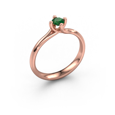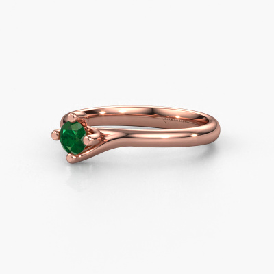 In your eyes, no one else compares to her. She is one in a million, unlike anyone else and pure? These qualities are emphasized perfectly by our modern rose gold solitaire emerald ring. This emerald is carefully selected by our keen artisan goldsmiths. It equals the unique qualities of the love of your life. There is no better way to memorialize your proposal than this symbol of true love. The ring shown above is called the Dewi Round, we call this a solitaire ring because it contains a single gemstone. The engagement ring is made in 14 Carat rose gold and has a round emerald of 4 mm. Each piece of jewellery is made to shine bright around your finger. Each jewel is hand made with love by our goldsmiths.After receiving your order, our goldsmiths will passionately start the creative process of making your engagement ring in our own studio. Because we don't have a big stockpile, these costs will not be passed on to you. Our pricing is proof of that! We offer top quality jewels at lowest price, guaranteed.Different styles of new rings are made daily by our team. Perhaps you have found a solitaire engagement ring somewhere. One you would like to give to your loved one. Please feel free to share your thoughts and design with our jewel designers. We would love to turn your design into a modern engagement ring. You can follow the development of your ring design because we use very detailed 3D drawings. On top of that, you can order a dummy of the design. A dummy is a plastic ring, which can be shaped according your ring design. You can try it on and check if the engagement ring is up to standard. We will gladly send you a non-binding offer, based on a fair price/ quality ratio. The offer will baffle you, considering the quality of the ring and gemstones.To make it easier for you, we offer a 30 day return policy. Check our terms and conditions.