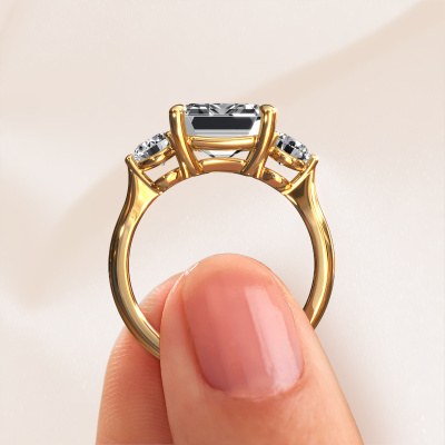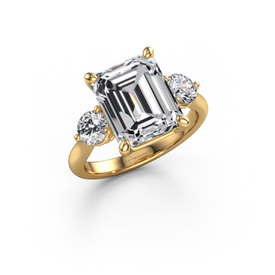 This 14 Carat gold ring is called Lieselot EME and is set with 6.01 crt lab grown diamond. Are you looking for a exclusive gold engagement ring which you can customize to your own liking? This exclusive engagement ring is set with lab grown diamond which is carefully selected for this specific ring in order to create the best effect. Our expert goldsmith will create your ring in our own crafting studio, where the lab grown diamond will be set with great care. The ring will then be polished till it shines perfectly. Nothing but the best for the love of your life! The great thing about our online tool is, that you can compile your own jewellery into a unique, personalized piece. Each piece of jewellery is made just for you, with attention to detail and design.After receiving your order, our goldsmiths will start the creative process of making your Lieselot EME engagement ring. We don't keep stock. This is advantageous because these costs will not be passed on to you. Therefore, we can offer jewellery at exceptionally low prices.Different styles of new rings are made daily by our team. Perhaps you have found a 3-stone engagement ring somewhere. One you would like to give to your loved one. Please feel free to share your thoughts and design with our jewel designers. We would love to turn your design into a exclusive engagement ring. You can follow the development of your ring design because we use very detailed 3D drawings. On top of that, you can order a dummy of the design. A dummy is a plastic ring, which can be shaped according your ring design. You can try it on and check if the engagement ring is up to standard. We will gladly send you a non-binding offer, based on a fair price/ quality ratio. The offer will baffle you, considering the quality of the ring and gemstones.To make it easier for you, we offer a 30 day return policy. Check our terms and conditions.