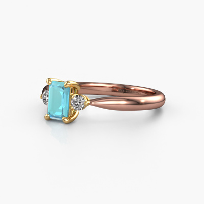 This 14 Carat rose gold ring is called Lieselot EME and is set with 6x4 mm blue topaz. Are you looking for a exclusive rose gold engagement ring which you can customize to your own liking? This exclusive engagement ring is set with blue topaz which is carefully selected for this specific ring in order to create the best effect. Our expert goldsmith will create your ring in our own crafting studio, where the blue topaz will be set with great care. The ring will then be polished till it shines perfectly. Nothing but the best for the love of your life! The great thing about our online tool is, that you can compile your own jewellery into a unique, personalized piece. Each piece of jewellery is made just for you, with attention to detail and design.After receiving your order, our goldsmiths will start the creative process of making your Lieselot EME engagement ring. We don't keep stock. This is advantageous because these costs will not be passed on to you. Therefore, we can offer jewellery at exceptionally low prices.Different styles of new rings are made daily by our team. Perhaps you have found a 3-stone engagement ring somewhere. One you would like to give to your loved one. Please feel free to share your thoughts and design with our jewel designers. We would love to turn your design into a exclusive engagement ring. You can follow the development of your ring design because we use very detailed 3D drawings. On top of that, you can order a dummy of the design. A dummy is a plastic ring, which can be shaped according your ring design. You can try it on and check if the engagement ring is up to standard. We will gladly send you a non-binding offer, based on a fair price/ quality ratio. The offer will baffle you, considering the quality of the ring and gemstones.To make it easier for you, we offer a 30 day return policy. Check our terms and conditions.