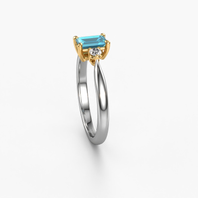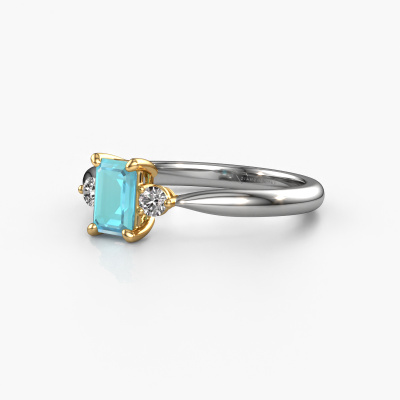 This 14 Carat white gold ring is called Lieselot EME and is set with 6x4 mm blue topaz. Are you looking for a exclusive white gold engagement ring which you can customize to your own liking? This exclusive engagement ring is set with blue topaz which is carefully selected for this specific ring in order to create the best effect. Our expert goldsmith will create your ring in our own crafting studio, where the blue topaz will be set with great care. The ring will then be polished till it shines perfectly. Nothing but the best for the love of your life! The great thing about our online tool is, that you can compile your own jewellery into a unique, personalized piece. Each piece of jewellery is made just for you, with attention to detail and design.After receiving your order, our goldsmiths will start the creative process of making your Lieselot EME engagement ring. We don't keep stock. This is advantageous because these costs will not be passed on to you. Therefore, we can offer jewellery at exceptionally low prices.Different styles of new rings are made daily by our team. Perhaps you have found a 3-stone engagement ring somewhere. One you would like to give to your loved one. Please feel free to share your thoughts and design with our jewel designers. We would love to turn your design into a exclusive engagement ring. You can follow the development of your ring design because we use very detailed 3D drawings. On top of that, you can order a dummy of the design. A dummy is a plastic ring, which can be shaped according your ring design. You can try it on and check if the engagement ring is up to standard. We will gladly send you a non-binding offer, based on a fair price/ quality ratio. The offer will baffle you, considering the quality of the ring and gemstones.To make it easier for you, we offer a 30 day return policy. Check our terms and conditions.