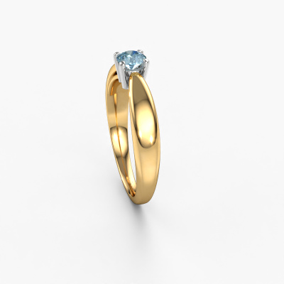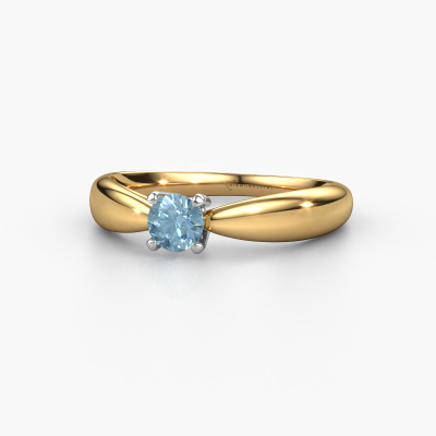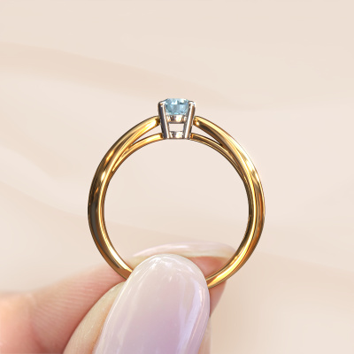 The ring shown above is called the Nichole. We call this a solitaire ring because it contains a single gemstone. The engagement ring is made in 14 Carat gold and has a round blue lab grown diamond of 4.2 mm. This extraordinary fantasy gold solitaire engagement ring is set with a beautiful round blue lab grown diamond to add sparkle to your proposal. The open prong setting allows light to strike the gemstone from various angles. Did you know a diamond represents everlasting love and fidelity? This makes it a perfect centrepiece. Our goldsmith carefully positions the gemstone of your choosing high on top of the ring, which makes it stand out. Each piece of jewellery is made just for you by our master goldsmiths in our own studio.